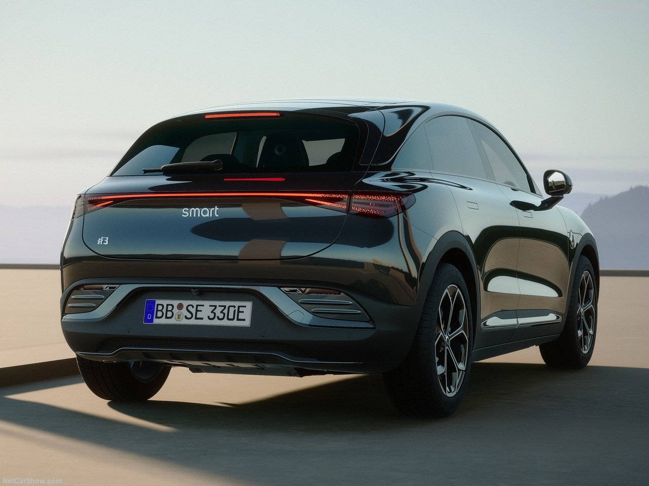 ה־Smart #3 נראה כמו האח הספורטיבי של ה־#1: קו גג משתפל לאחור בסגנון קופה, חזית נקייה עם פס תאורה רוחבי ויחידות LED מודרניות, ומאחור עיצוב רחב שמבליט את החתימה הייחודית של הדגם. מקדם הגרר עומד על 0.27 – נתון מצוין שמסייע ליעילות אנרגטית. החישוקים הגדולים (עד 20 אינץ’) והפרופורציות השריריות מעניקים לו מראה יוקרתי ובולט.