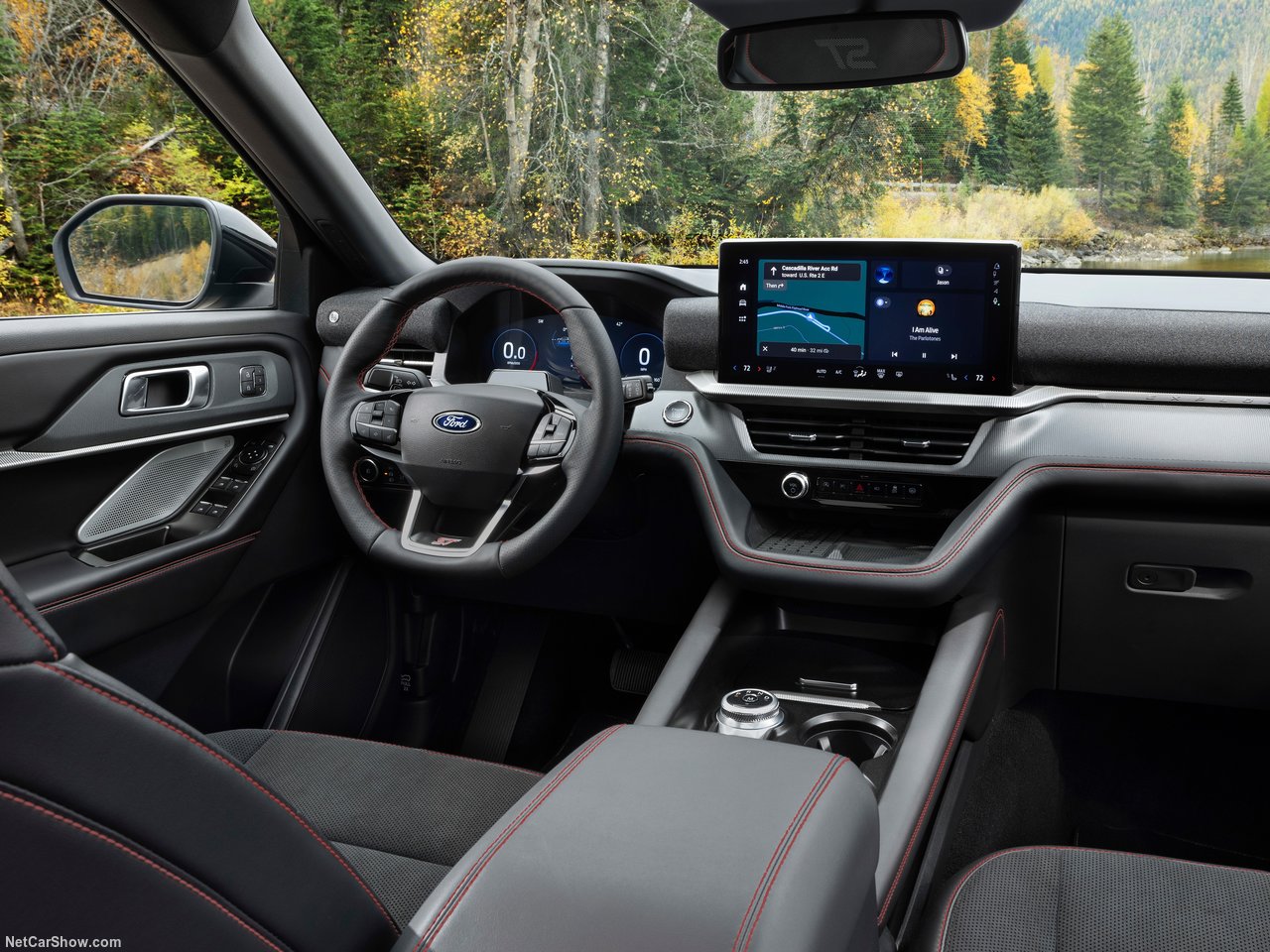 כאמור, החדשות הגדולות ביותר באקספלורר החדש נמצאות בפנים. פורד זנחה את מסך המגע האנכי והמוזר שהיה בדור היוצא, ותכננה את הדשבורד מחדש. כעת, במרכז מככב מסך מגע אופקי ענק בגודל 13.2 אינץ' המריץ את מערכת ההפעלה החדשה והמבוססת של גוגל (Google Built-in). המשמעות היא שאתם מקבלים מפות גוגל, עוזרת קולית וחנות אפליקציות – הכל מובנה בתוך הרכב, בנוסף לתמיכה באפל קארפליי ואנדרואיד אוטו אלחוטיים.